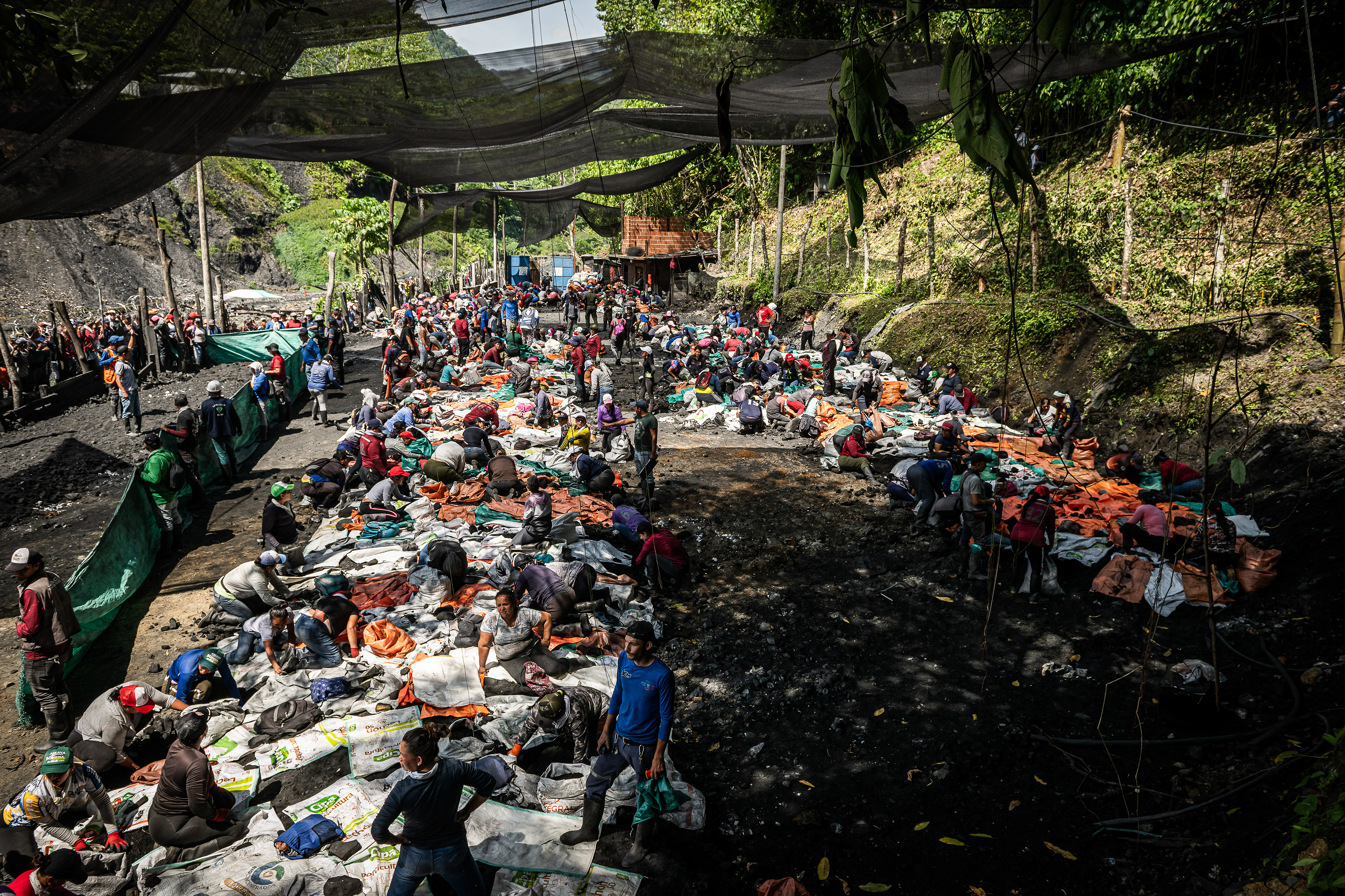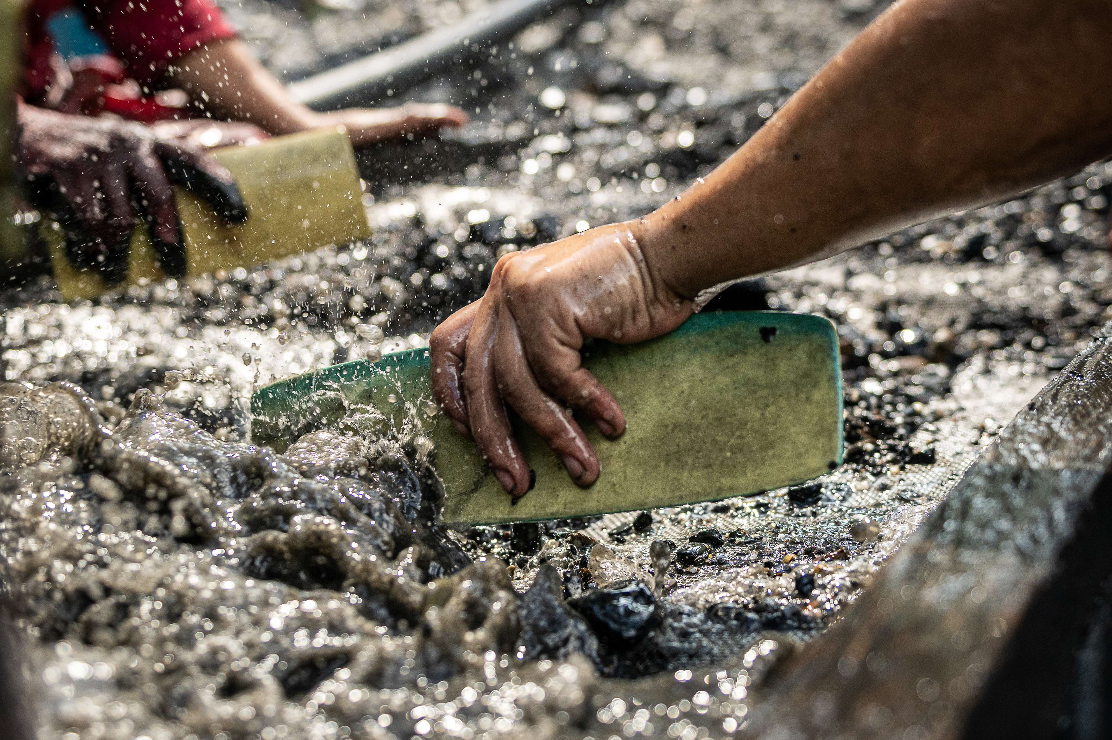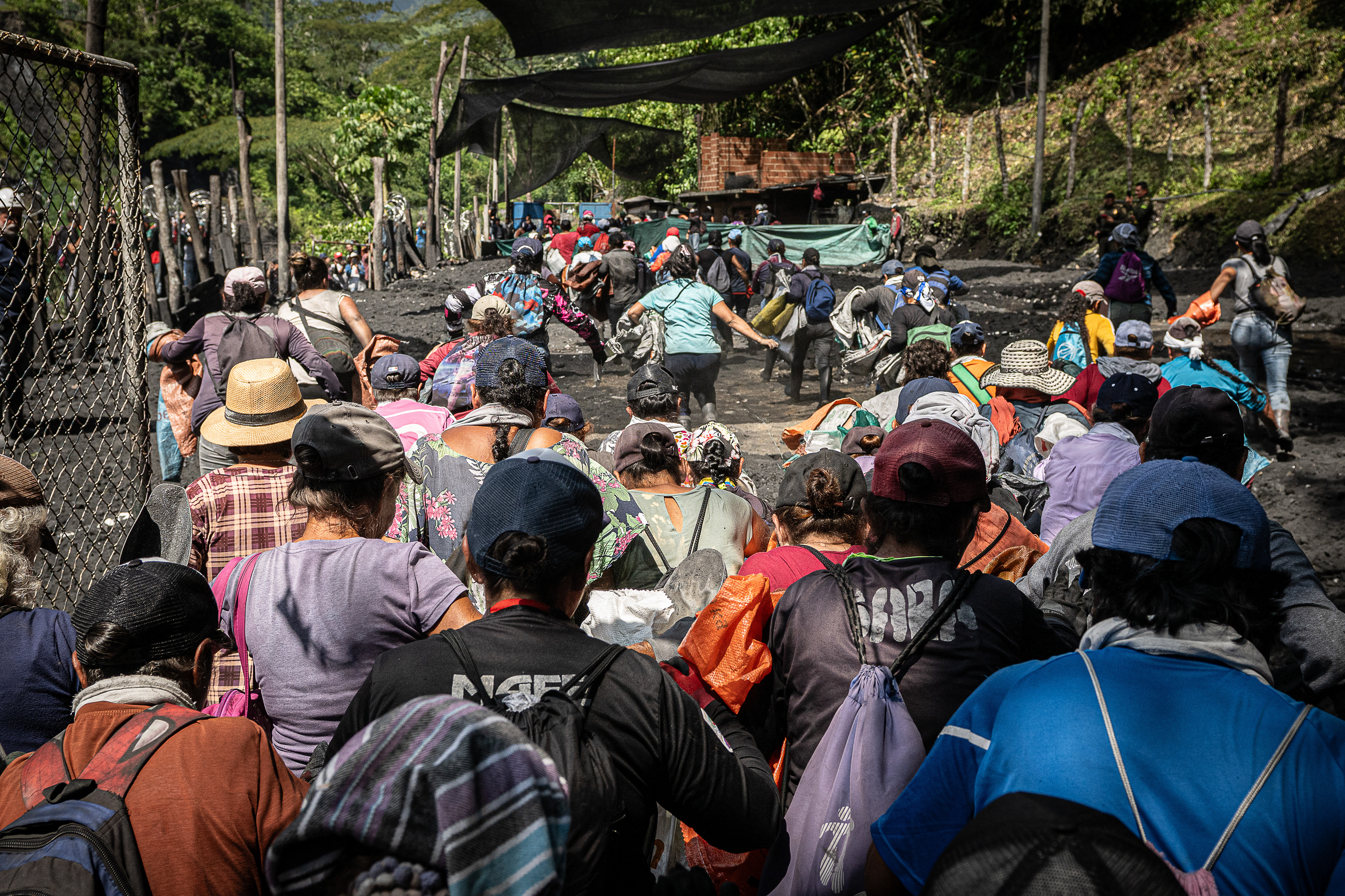 Las puertas se abren y la montaña de tierra muy negra detona la carrera. En menos de dos horas, la esperanza se convierte en cientos de bultos pesados viajando a hombros. Los enfrentamientos son comunes, las avivadas son parte del juego. Al río van con la zaranda y la fe.